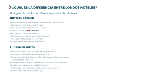 Con gusto le detallo las diferencias entre ambos hoteles: