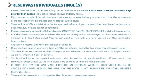 • Reservations made with a Non Refundable rate CANNOT BE CANCELLED OR MODIFIED and don't have refunds.